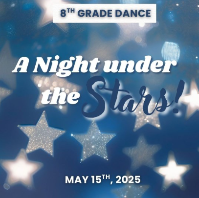 Get ready for a magical night at the 8th Grade Dance on May 15th! This year’s theme, “Under the Stars,” promises an evening of music, dancing, and unforgettable memories as we celebrate the end of middle school together. Planning will begin soon, and we can’t wait to make this a special night for our 8th graders. Stay tuned more details are coming soon!