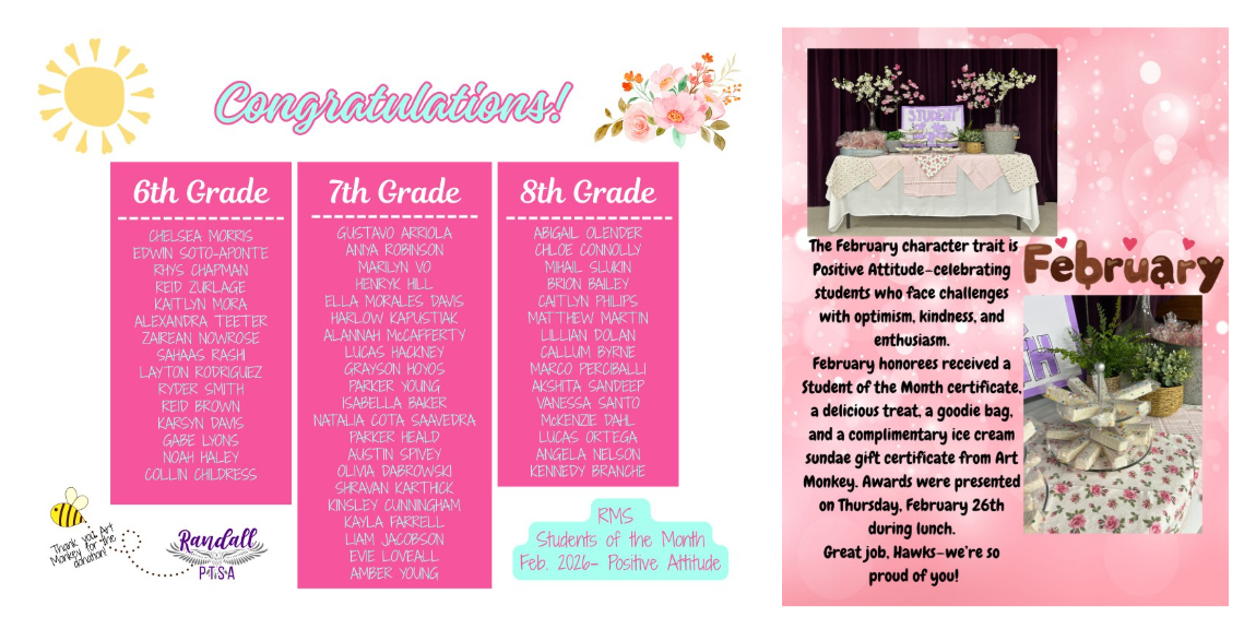 For any questions or more information, please email the Randall PTSA Birthday Marquee Chair, Jennifer Strom at birthdays@randallptsa.org.